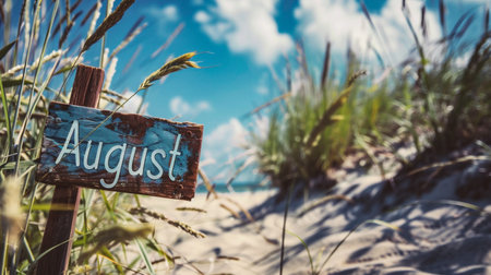 apple with a leaf and the word august composed of letters. inscription from cubes on a background of summer foliage