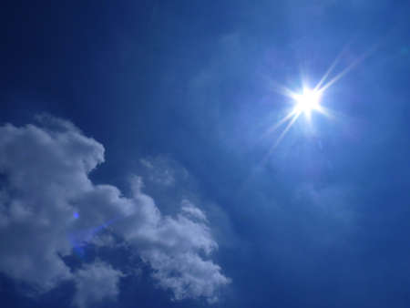 Sun in blue sky with white cloud