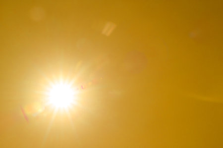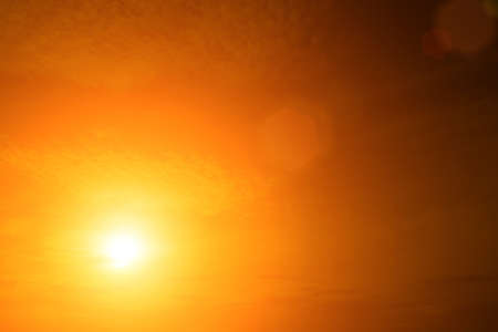 Bright sun in orange sky during hot summer weather.