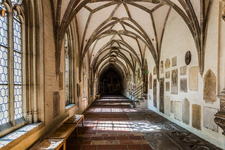 Augsburg, Germany - September 08, 2016: Dark end of empty hallway in old historical gothic German church of the Augsburg