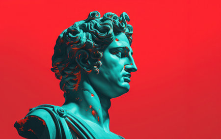 ancient antique statue sculpture bust, on a bright red background, close-up