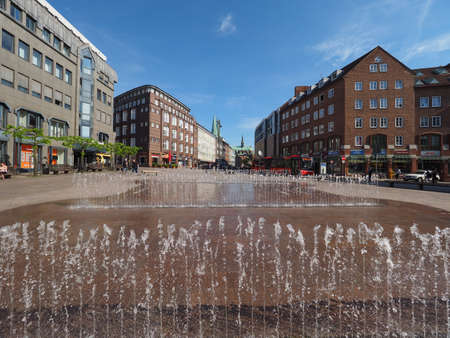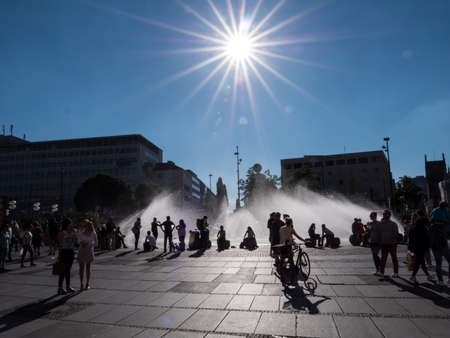 MUNICH, GERMANY - JUNE 10, 2017: A public square with a fountai