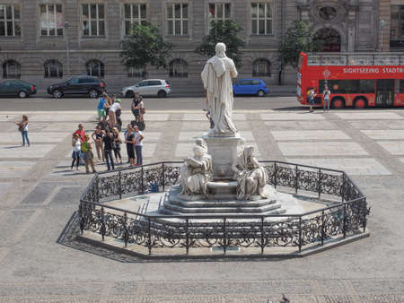 BERLIN, GERMANY - CIRCA JUNE 2016: Friedrich Schiller monument in front of Konzerthaus Berlin concert hall on the Gendarmenmarkt square in central Mitte district