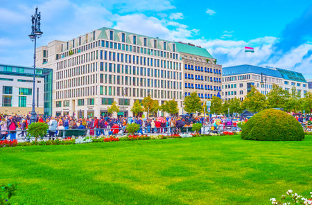 BERLIN, GERMANY - OCTOBER 3, 2019: The activity in Pariser Platz on German Unity Day, one of the National Holiday with celebration and festivals all around the country, on October 3 in Berlin