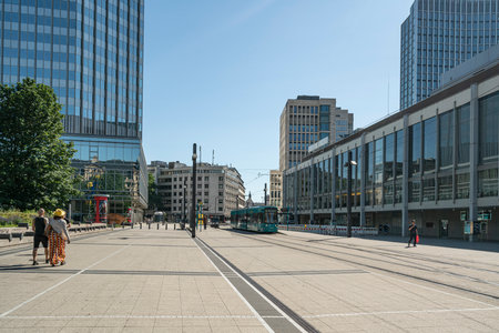 Frankfurt, Germany. July 2019. the wide Willy Brandt square of the city
