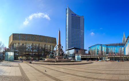LEIPZIG, GERMANY - CIRCA MARCH, 2018: The panorama view of Augustusplatz with University and Gewandhaus in Leipzig town in Germany