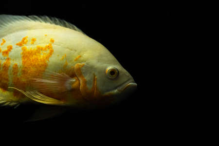 Astronotus ocellatus fish also known as Oscar fish isolated on black background.