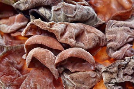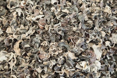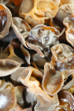 Heap of dehydrated Jews Ear mushrooms, Asian cuisine ingredient