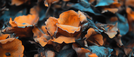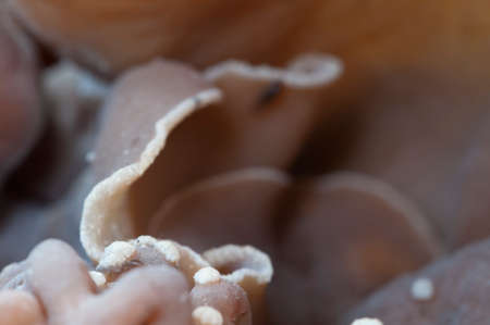 Closeup shot of edible mushrooms known as Wood ear or Jews ear or Jelly ear (Auricularia auricula-judae) with blurred background