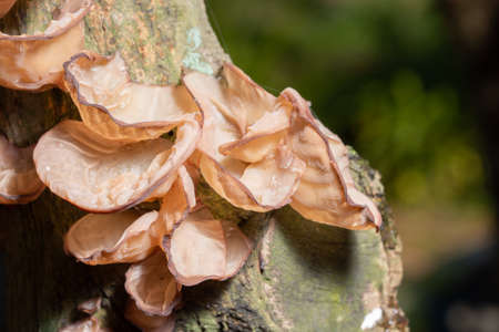 Mushrooms growing on a tree trunk in the rainforest,Wood ear mushrooms They can be used as food or eaten in many ways.