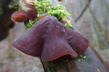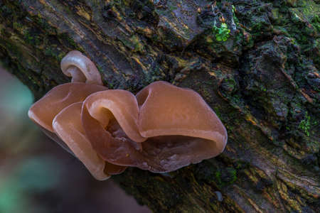 Forest mushrooms - edible mushroom Auricularia auricula-judae (Latin for 'Judas's Ear'), known as the Jew's ear, (black) wood ear, jelly ear, pepeao