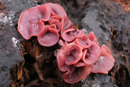 Peziza repanda ascomycete fungus, close up shot, local focus