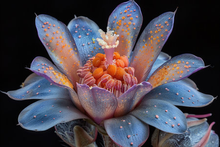 A stunning close-up of a cactus flower in full bloom, showcasing its vibrant colors and intricate details against a dark background.