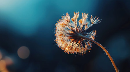 A close-up shot of a dandelion seed head, with a blurred background, showcasing the delicate structure and texture of the seeds.