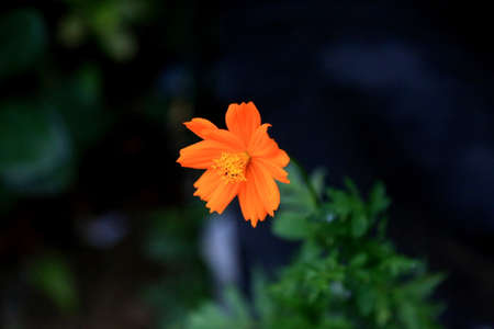 Close-up Orange Mexican aster or Cosmos flower blooming in the garden, Family Asteraceae. Beautiful Mexican aster flower. Shot flower outdoor in natural light.