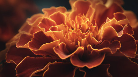 This close-up image showcases the intricate details of a vibrant orange marigold flower, highlighting its textured petals and radiating beauty, perfect for nature themes.