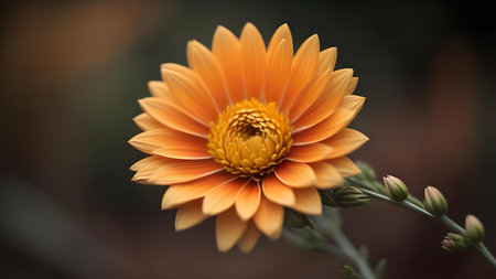 Close up of an orange daisy flower with shallow depth of field. generative ai