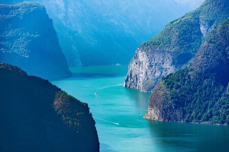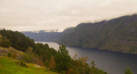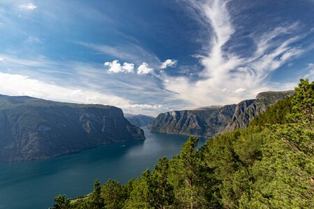 Aurlandsfjord fjord amazing landscape, Norway Scandinavia. National tourist route Aurlandsfjellet
