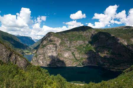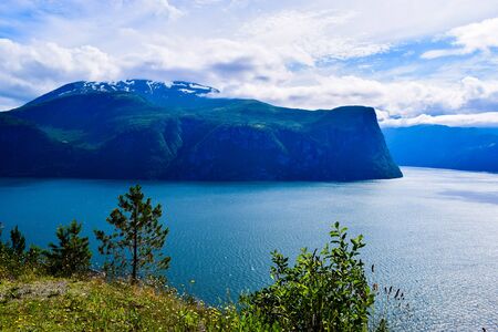 Aurlandsfjord fjord landscape, Norway Scandinavia. National tourist route Aurlandsfjelle