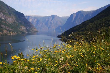 View of an Aurlandsfjord in Norway.