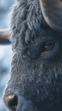 Imposing Bison Portrait: Snow-Covered Majesty in the Wild
