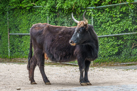 Bos primigenius in the forest. Wildlife scene from Poland.