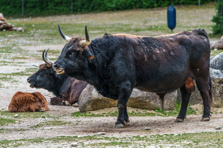 Heck cattle, Bos primigenius taurus, claimed to resemble the extinct aurochs. Domestic highland cattle seen in a German park