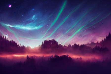 Mysterious northern polar lights phenomenon illustration