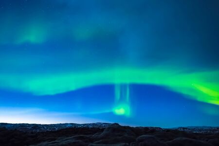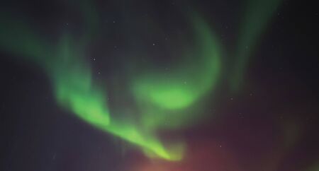 Aurora borealis in the night northern sky. Ionization of air particles in the upper atmosphere.