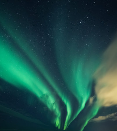 light green northern aurora over Iceland lights and swirls in the sky the Northern lights magnificent phenomenon of the earth