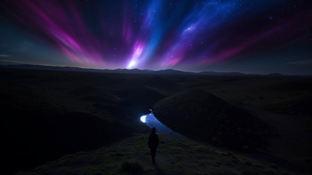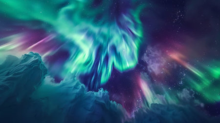 AI Generated. A captivating display of cosmic lights and colors in a dark vastness