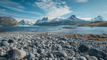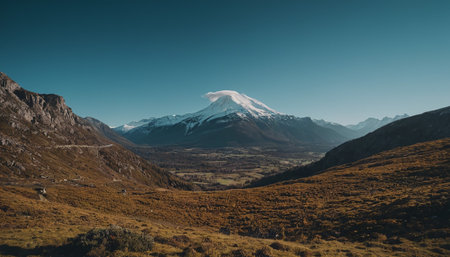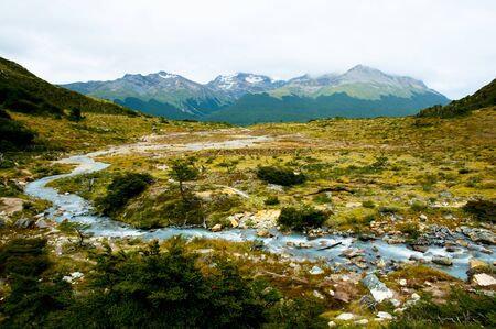 Snowy andes range mountain at autumn season landscape, Tierra del Fuego province, Argentina