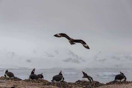 Antarctica, group of Adelie Penguins. Nature and landscapes of Antarctic