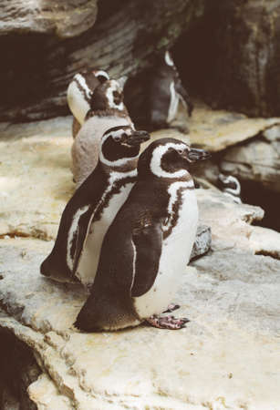 Magellanic penguins in the zoo. Spheniscus magellanicus.