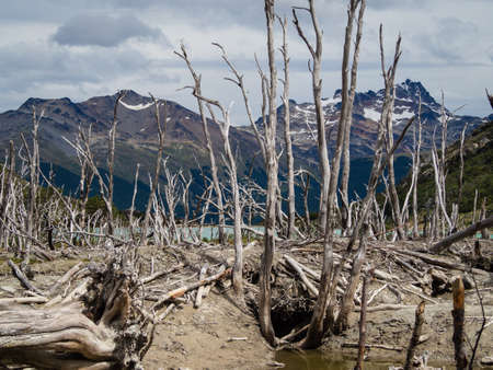 Dead forest (caused by beavers) in Tierra del Fuego, Argentina, Patagonia