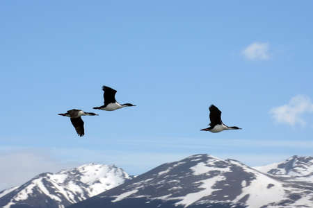 Cormorant colony on an island at Ushuaia in the Beagle Channel Beagle Strait, Tierra Del Fuego, Argentina, South America