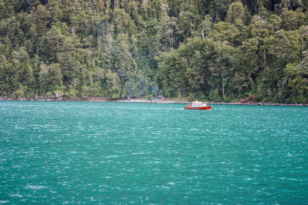Beautiful Lanscape of Lake todos los santos.. And volcan puntiagudo. Taken during Autumn at 204.2 msm altitude at Vicente Perez Rosales national park at Refugio La Picada - Petrohue, Puerto Varas in Los lagos region (CHILE)