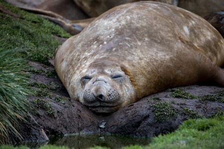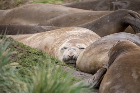Sea lion colony on the rock in the Beagle Channel, Tierra del Fuego, Southern Argentina.