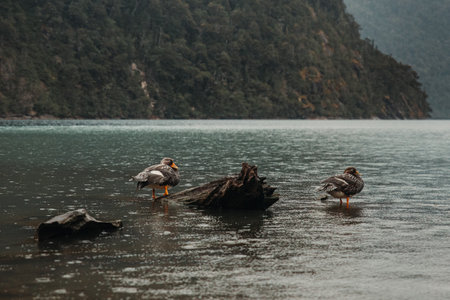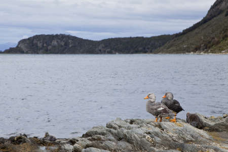 Ducks looking at the bay in tierra del fuego national park Argentina