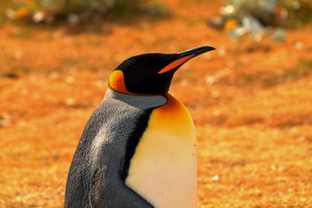 A close-up view of a king penguin, but its black feathers make it invisible to its eyes.