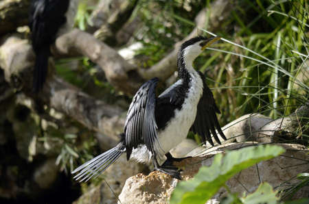 A white-breatsted cormorant spreads it's wings to dry in the sun.