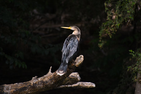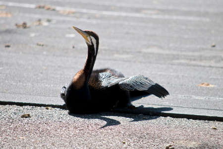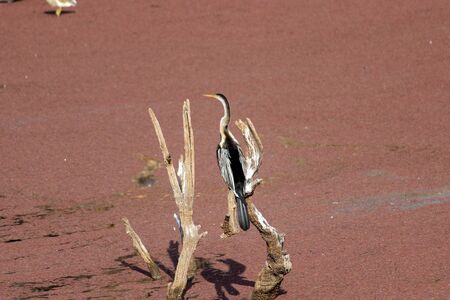 Anhinga (snake bird, water turkey, darter) sunning to dry off after diving into the water trying to catch fish