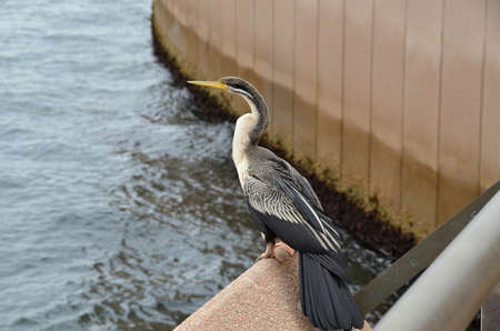 anhinga (Anhinga anhinga) perching near lago de las regatas lake, a public park in Buenos Aires city