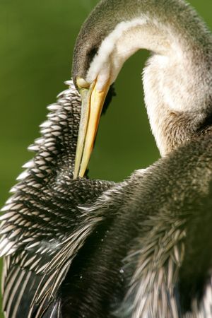 The Australian darter's feathers are not waterproof and therefore it has to preen and dry them out in the sun.