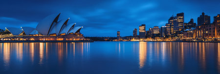 Sydney Harbor Twilight, Australia Iconic Cityscape with Opera House and Skyline Reflections.