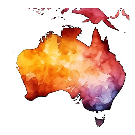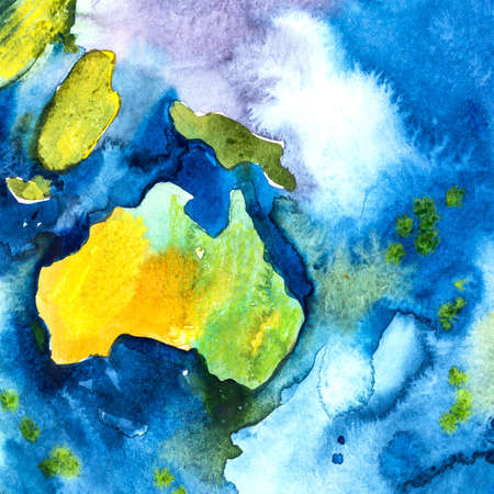 Artistic colorful watercolor painting representing the map of the australian continent, ideal for celebrating australia day