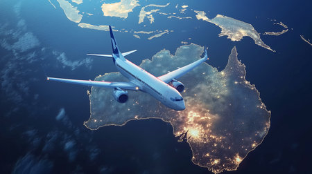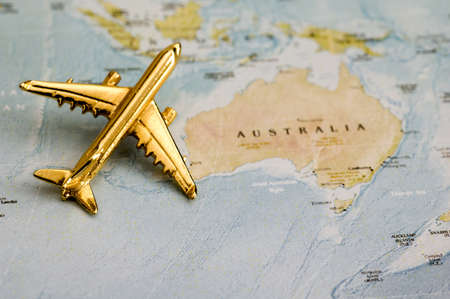 Exploring Australia: Plane and Map Concept for Travel, Tourism, and Adventure Planning
