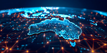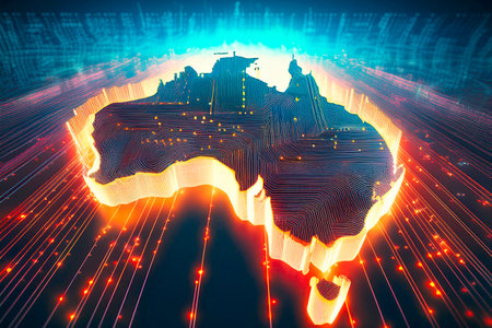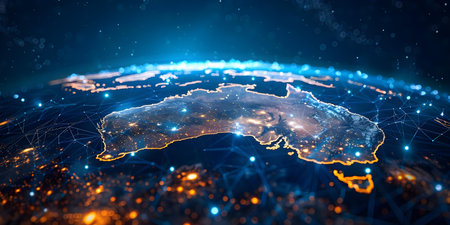 Exploring Technology and Connectivity through a Digital Map of Australia. Concept Technology, Connectivity, Digital Map, Australia, Exploration