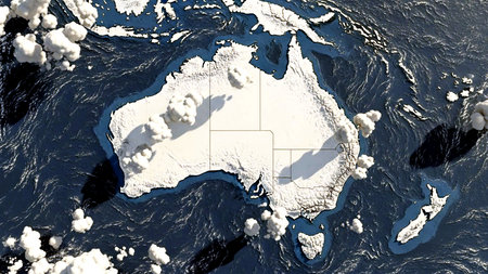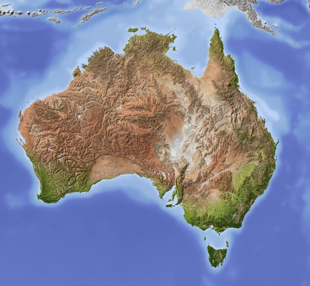 Physical map of Australia, with high resolution details. Flattened satellite view of Planet Earth, its geography and topography. 3D illustration - Elements of this image furnished by NASA