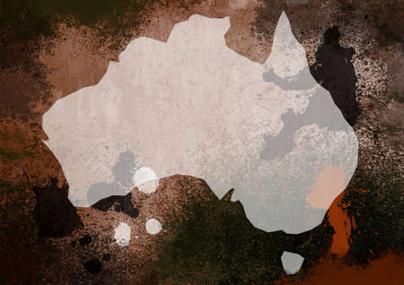 A Grunge Styde Map of Australia in White on Brown